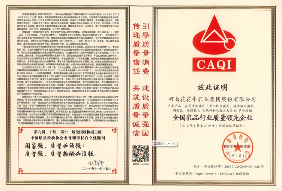 • 全國乳品行業(yè)質(zhì)量領(lǐng)先企業(yè)